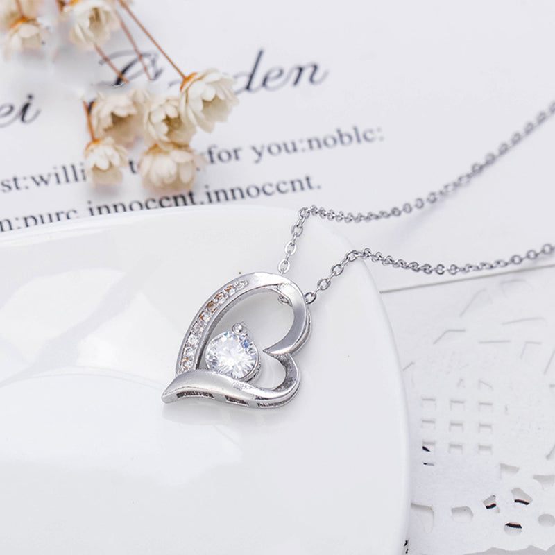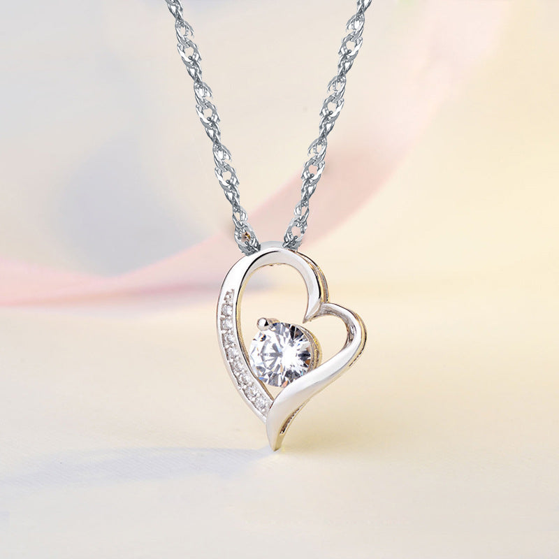 High polished heart pendant surrounding a flawless 6.5mm Cubic Zirconia, embellished with smaller Cubic Zirconia adding sparkle and shine.