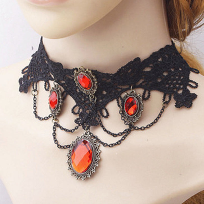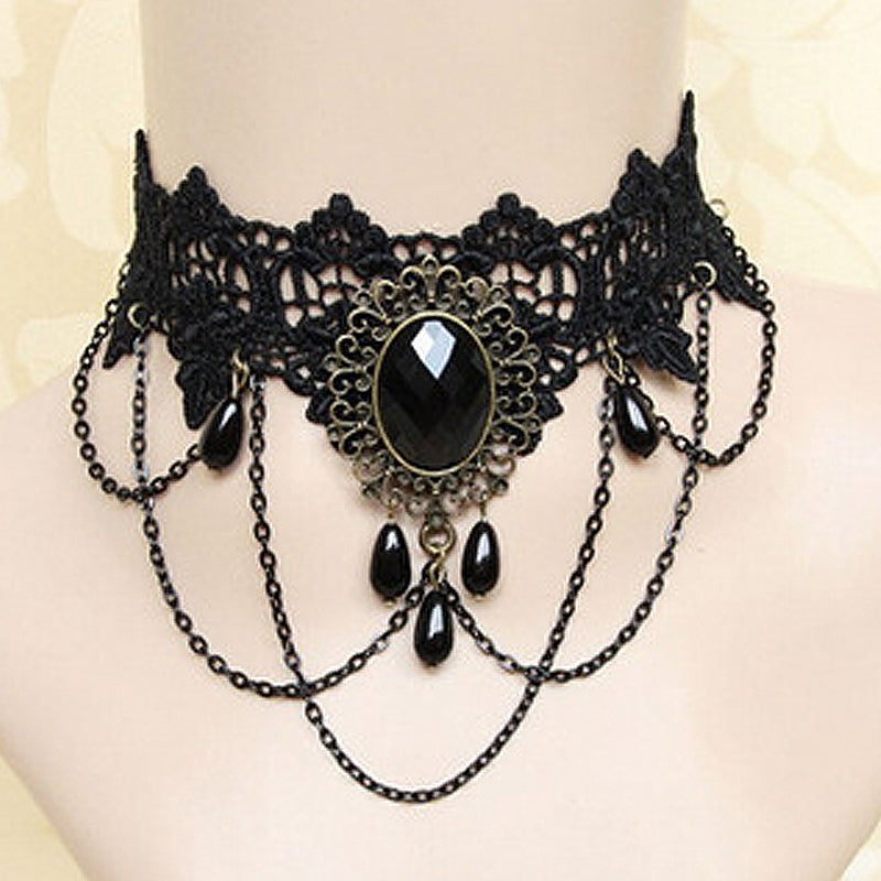 Style: Tattoo choker, statement necklace, floral lace choker necklace, bead necklace, collar necklace, cosplay accessories, punk choker
