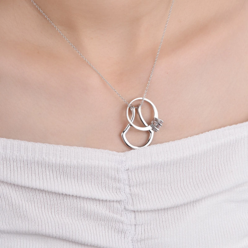 - To attach your ring, slide the ring onto one end of the pendant. Keep sliding the ring around the pendant, bending and pulling the chain as you go. Once the ring has traveled all the way around the pendant, release the ring and you're done! To remove your ring, simply reverse the steps.