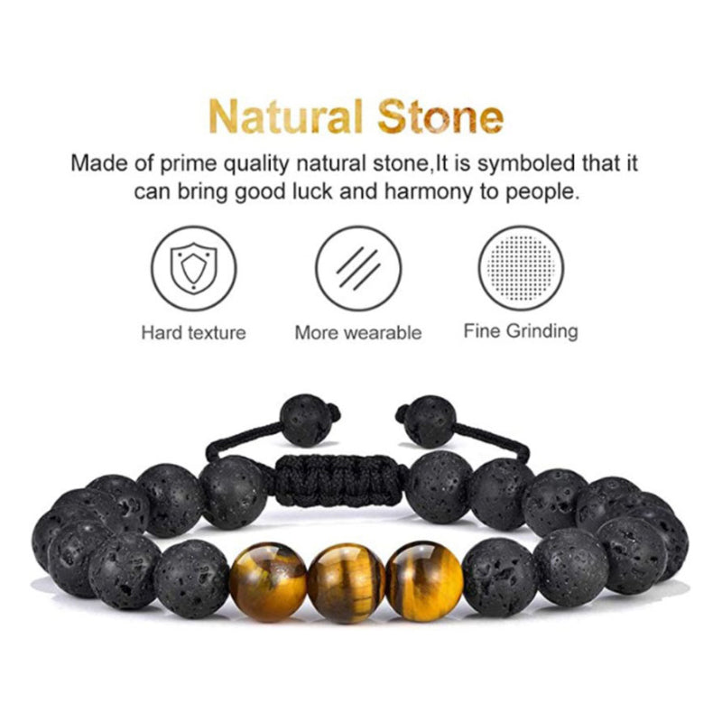 MATERIAL: Natural black lava rock stone and tiger eye, come with a easy to store flannelette gift bag. Natural stone bead possess low density and light weight. Its cool feeling in hands can make the anxiety calm down.