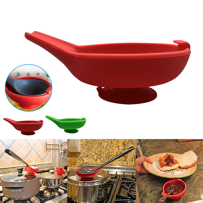 • SUCTION CUP FOR LID - The Spoon Buddy is suction-cupped onto the top of your pot lid while you cook - minimizing mess on your counter and allowing for quick access!