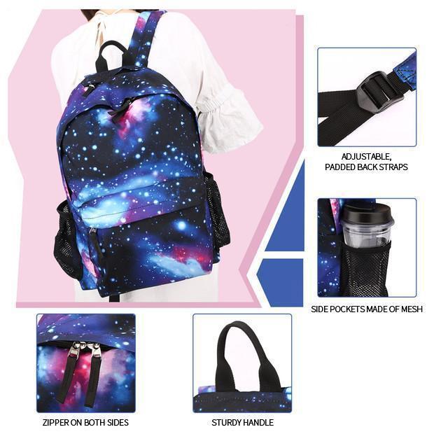 - Starry Sky Print: Lightweight and durable backpack, perfect for school, travel, commuter etc. A fashionable unisex design, bright print of the starry sky. Beautiful patterns and stars are the favorites of teenagers, simple and stylish design and fresh colors make every day beautiful and different.