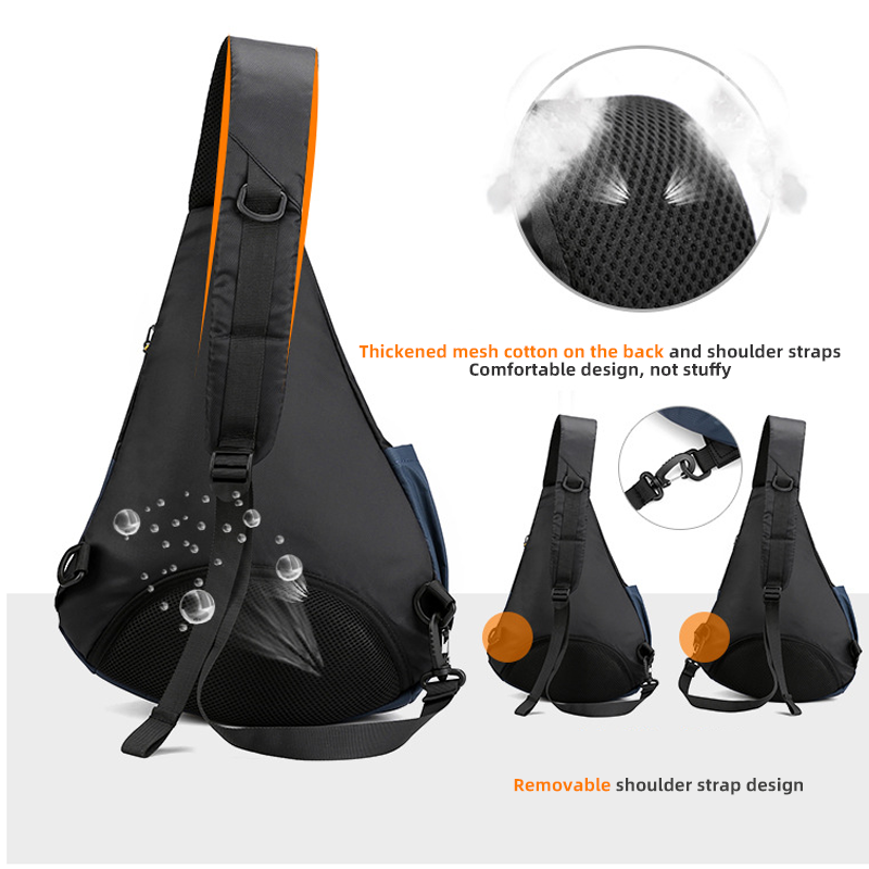 Unique sling backpacks(Right/left switchable strap +Waist strap+3D decompression designed back pad): The strap is designed to clip either right or left shoulder, it is great for people who has preference in specified shoulder to pack and for another shoulder to rest. Wearing this bag is super comfortable, the pressure and tireness can be greatly reduced by the thickened shoulder strap and the 3D back pad, No longer feel hot with the breath-active net on the back.