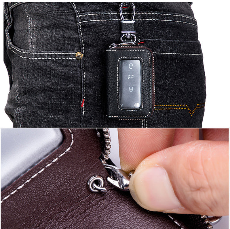 CONVENIENT ORGANIZER: The zipper on the two side of the car key case can help you easily to open/close the case, and it will protect key damage and makes your belongings secure inside and easy to access. Car key case wallet also fits for some coin or currency.