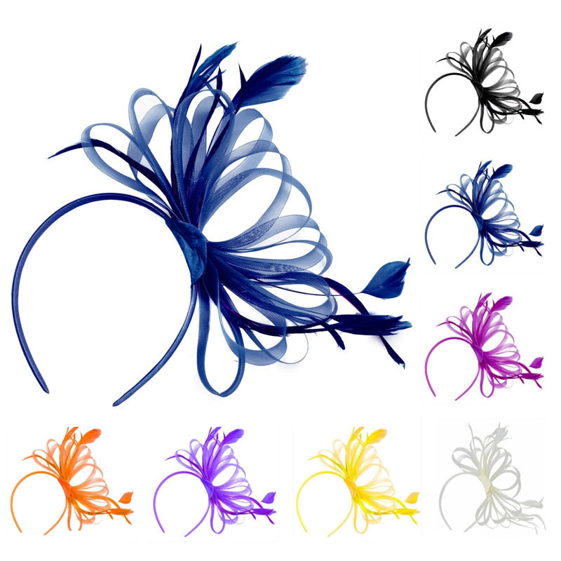 Fascinator Hair Clip Head Hoop headbands Veil Flower Cocktail Tea Party Headwear adorned with pretty elegant flower and feather.
