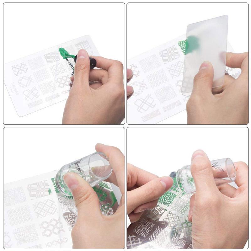 - Perfect nail combination kit - This nail stamping kit has 8 stamping plates and 1 clear nail stamp and 1 nail scraper, a variety of nail templates, several models, you can choose any nail plates to make a good nail design with the stamp you want!
