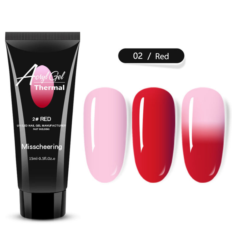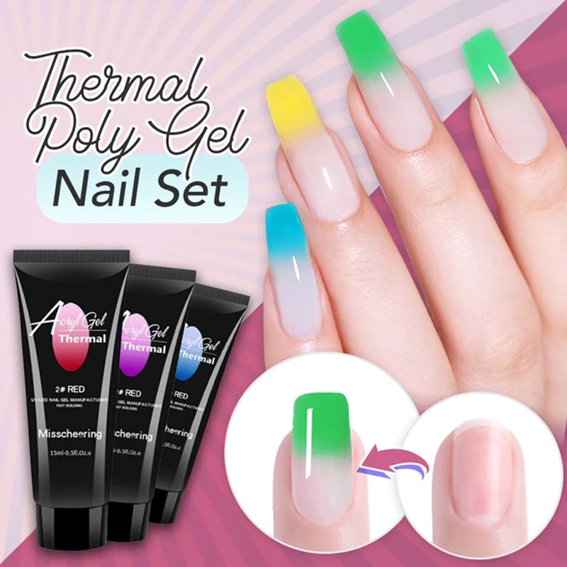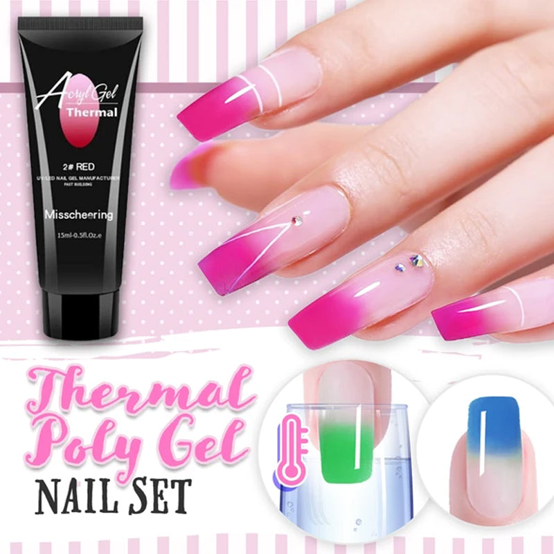 The Thermal Poly Gel Nail Set features a bright pigmentation in a unique formula that changes color in response to fluctuating temperature. Enjoy a wide range of gradient shades that provides a more vivid & unexpected look on your nails!