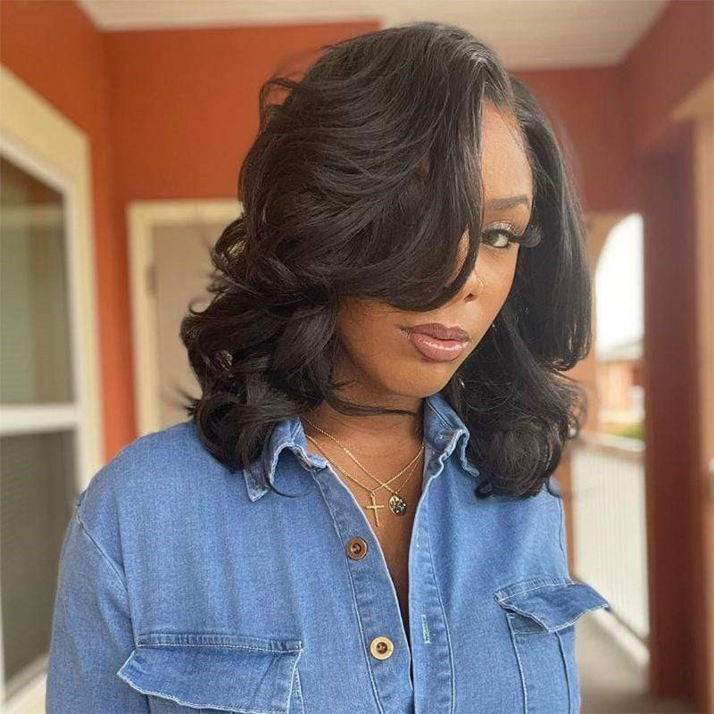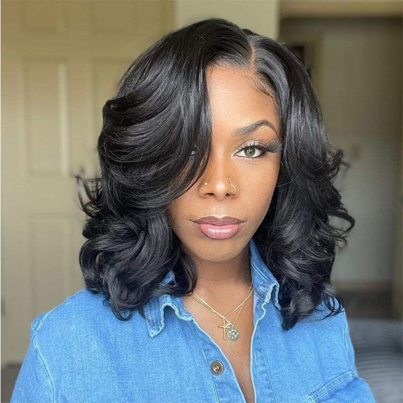Style: Pure Black Short Hair Nature Wavy none Lace Frontal Wig