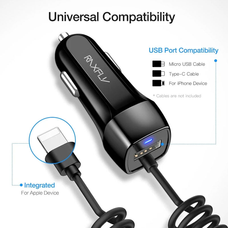 - Name: RAXFLY Universal Car Charger With USB Cable