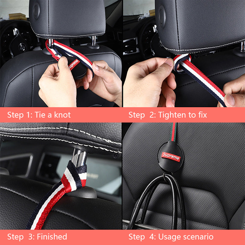 Easy to install and use - all you have to do is remove and put the headrests on. You can quickly and easily release or remove the hooks in seconds without additional tools. The nylon webbing can rotate 360 degrees to ensure flexibility, just use it on the front of the seat and on the back to hang smoothly on any type of seat and drop straight down.