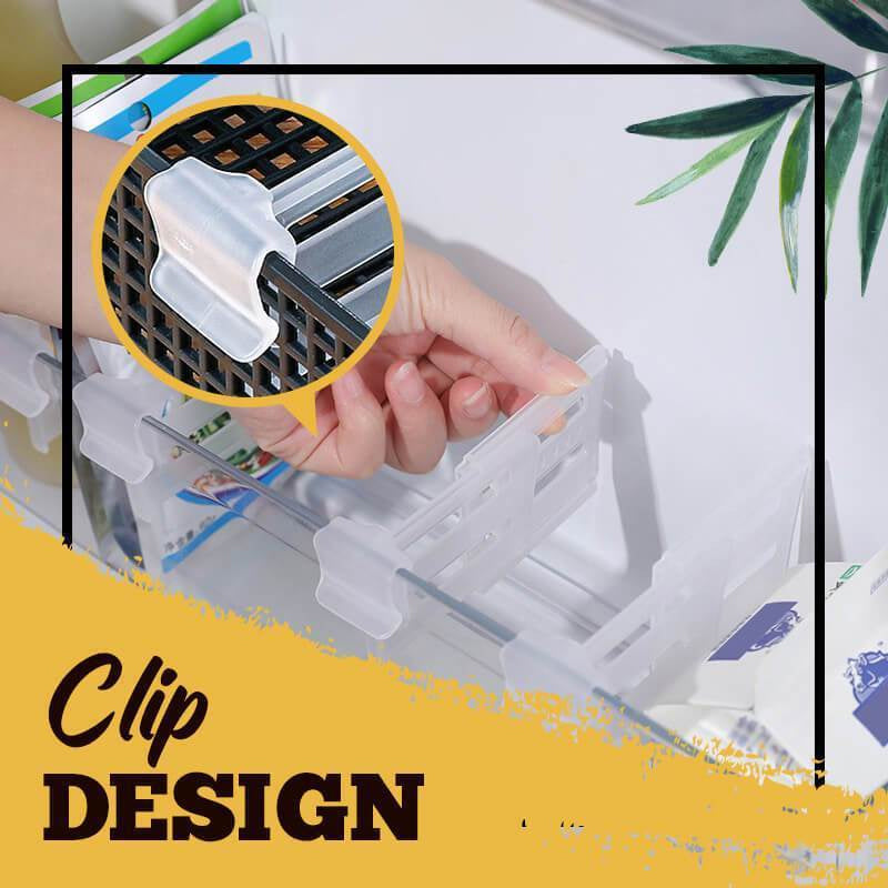 This is a kitchen Fridge Space Allocator, not only can be used in the refrigerator but also can be used in different places according to the equipment. Just install it on the door cover of the refrigerator to separate it neatly!