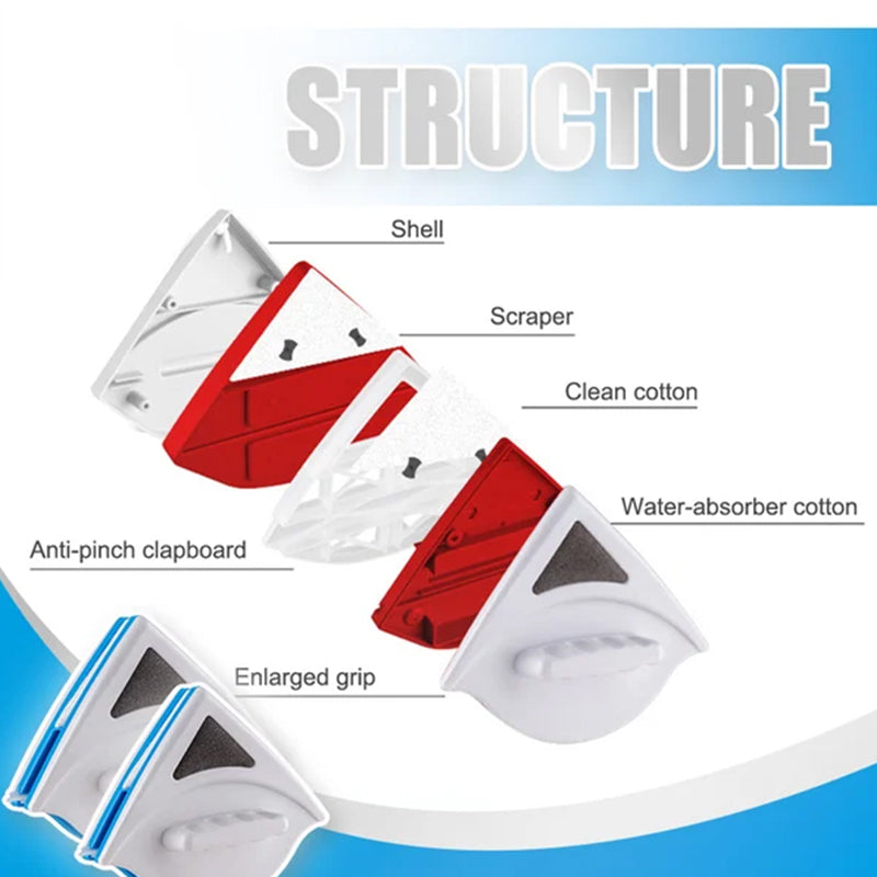 • Upgrade Magnetic Glass Cleaner:  Some glass wiper on the market is with very strong magnet that has no safe way to open and easy to hurt your hands. Ours is an upgraded double-sided glass cleaner, which can be rotated open for easy and safe operation.