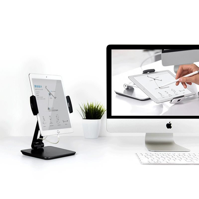 The adjustable stand/holder for tablets and smartphones is designed to allow hands free use whether at home or office.
