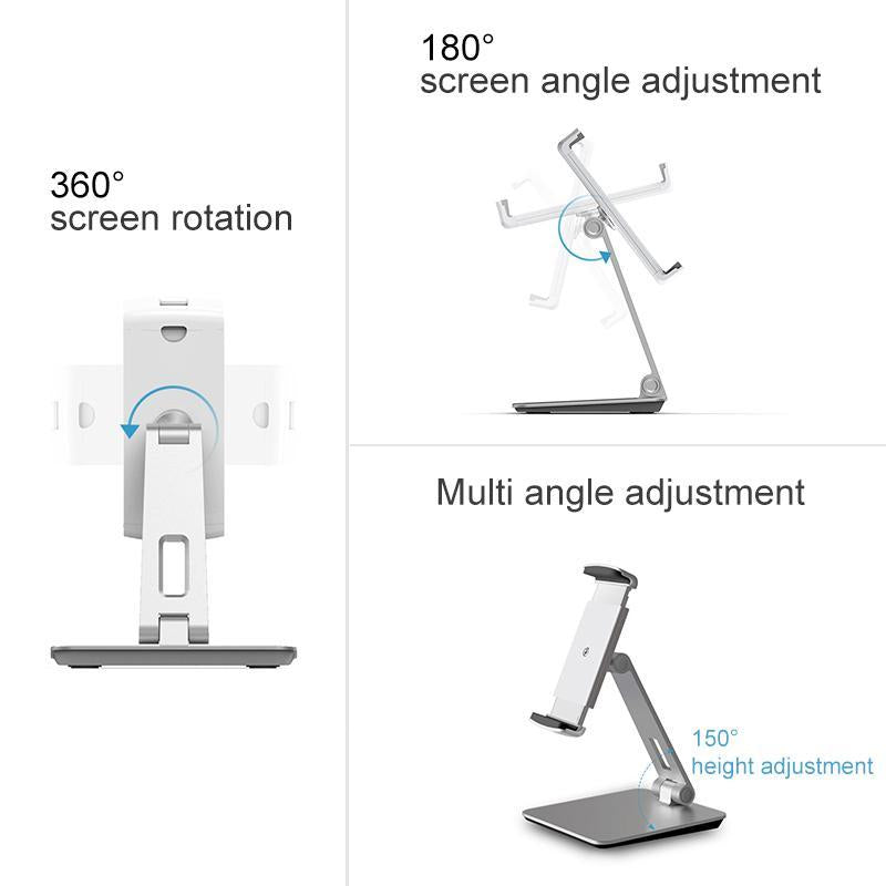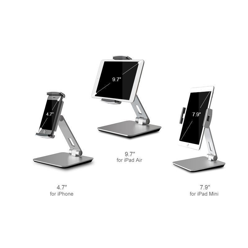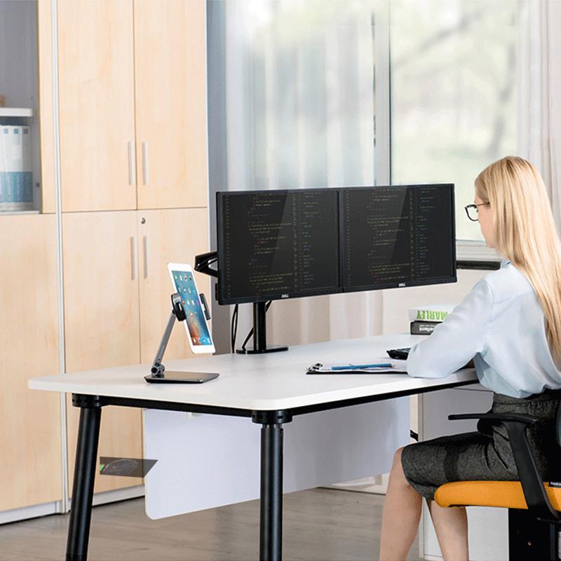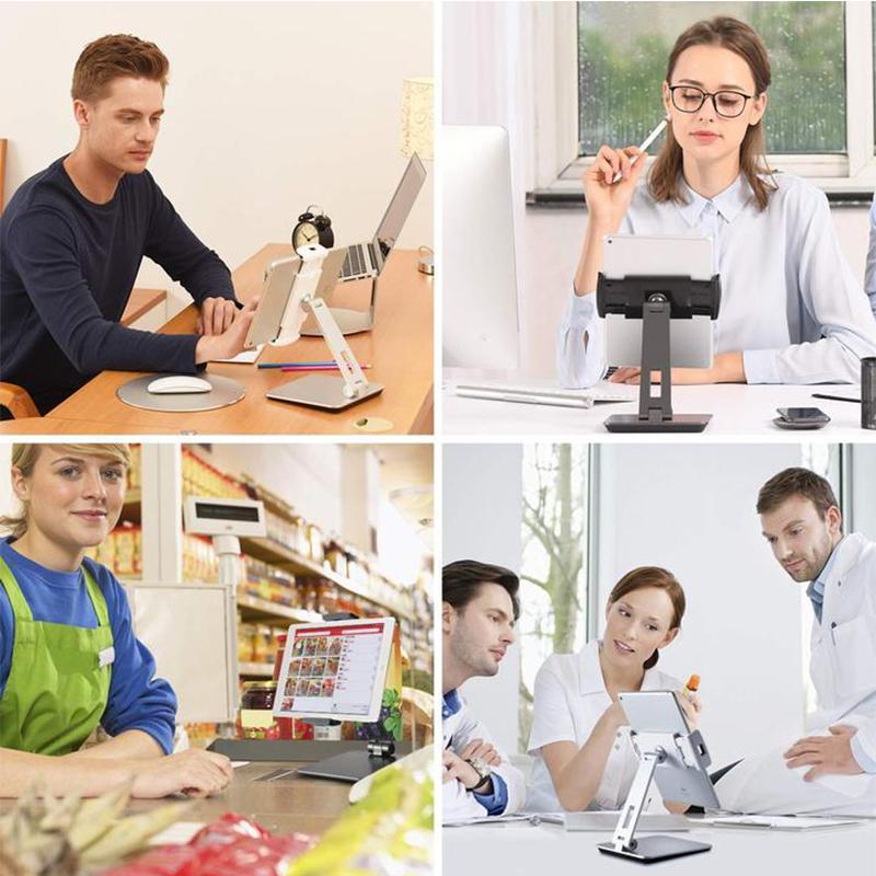 - Sturdy & heavy-duty metal base and arm form a highly rigid structure to sustain various tablets and phones with up to 1.3 feet elevation for better posture and eyelevel view. Multi-task as a dual-screen display on office desktop and retail business Point of Sale register, etc.