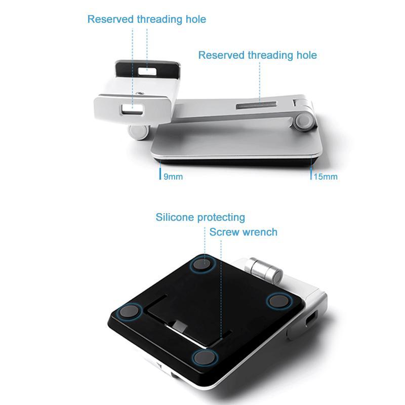 - Ergonomic design echoes with your sleek tech gadgets in harmony, featuring special cutouts on both the holder and the base for housing power cord – a true tablet computer stand with rubber padding on bracket holder for protection. Use as iPad mini holder mount for bed, mobile display and much more