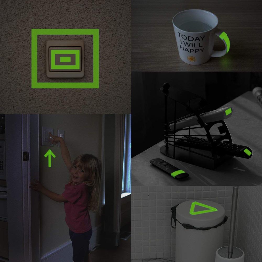 - Multi-functional: decorate wall, door, window, hallway, floor; mark exit signs, steps, stairs, cordon, cup, dishes, remote control, light switch.
