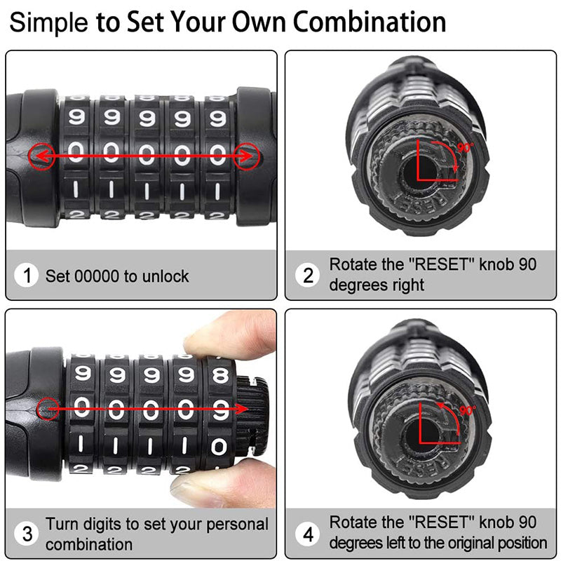 - SECURE & RESETTABLE: Smart 5-digit resettable combination chain lock, much safer than other 4 digit locks. Easy to set your own personalized number combination.