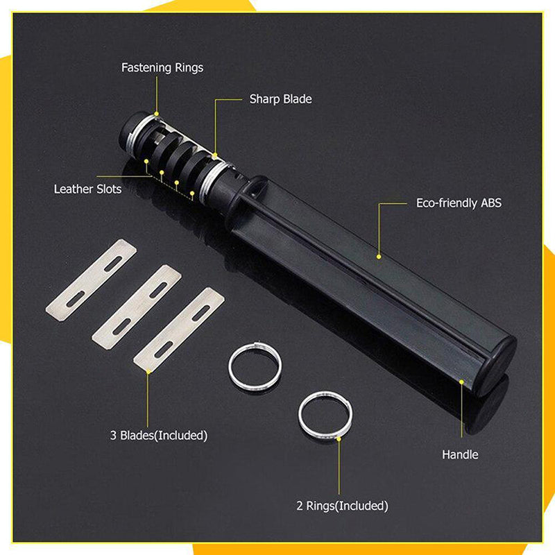 The leather slot contains various blade widths and able to cut out your desired length of the leather cord. Comes with two sturdy rings that help tighten the blades securely for enhanced safety usage. Made of shaper steel which is easy to use and gives you a smooth cutting experience.