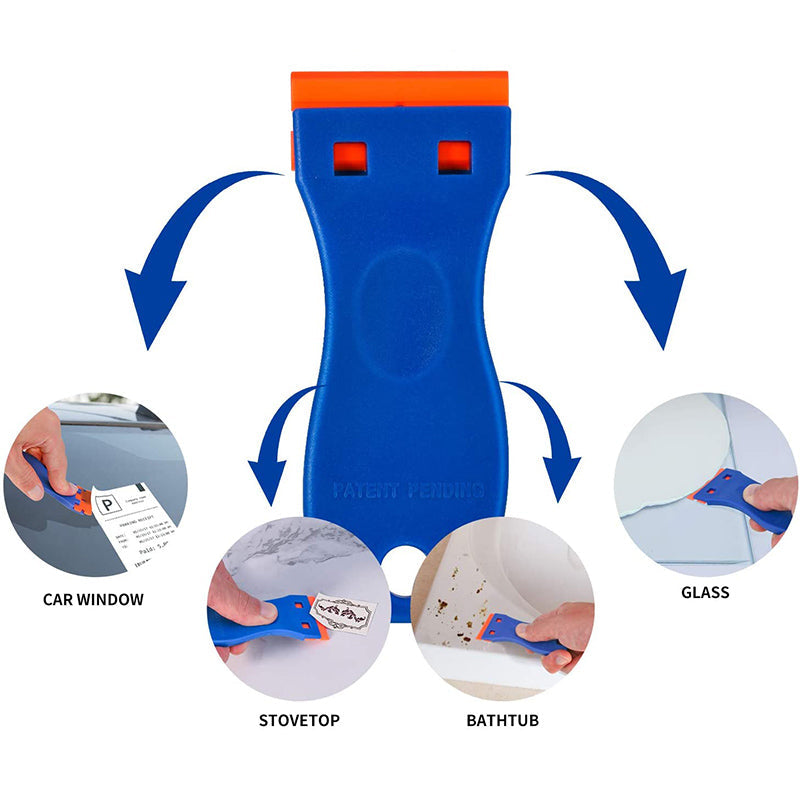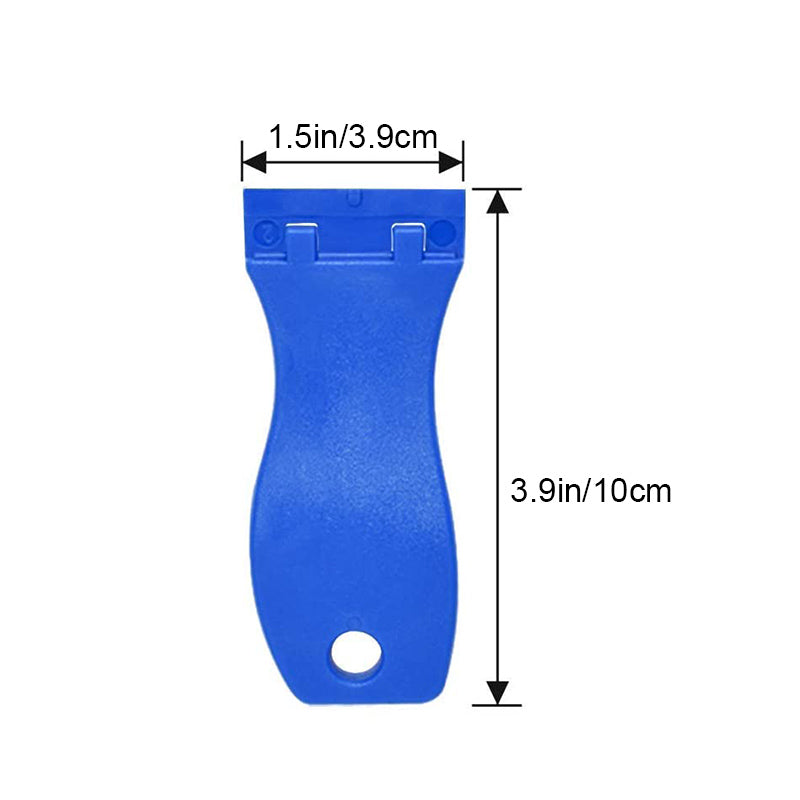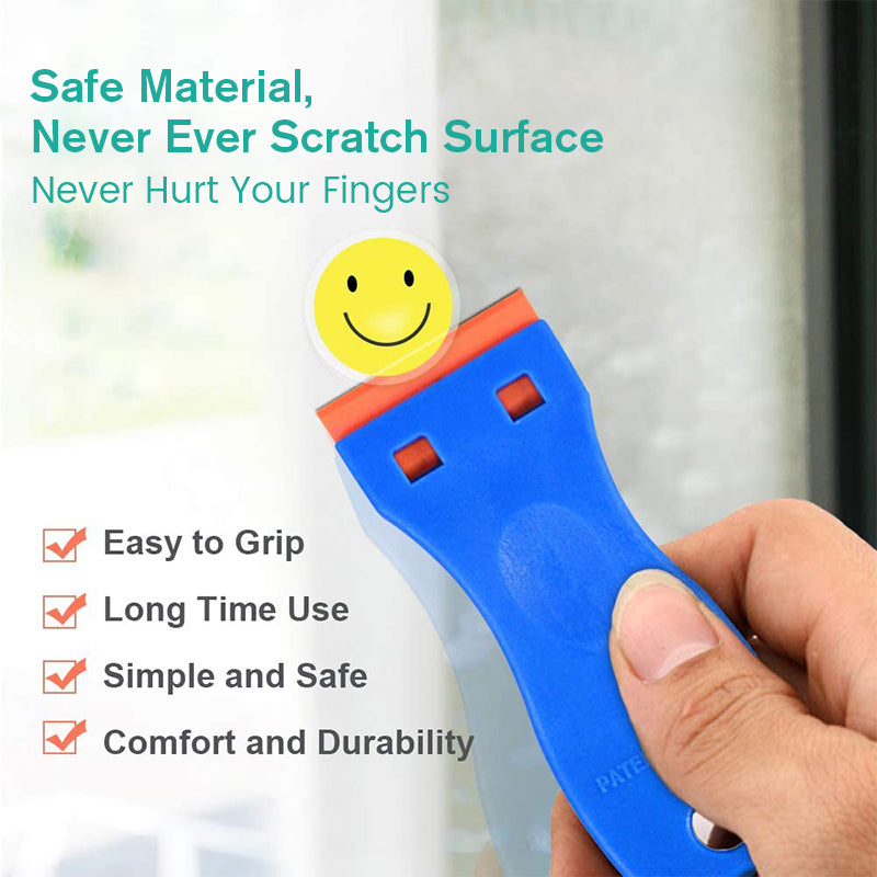 - Sharp Blades & Scratch Proof - Safe plastic razor blade scraper is an ideal tool for scraping away unwanted materials anywhere. It's a plastic razor blade but sharp enough to remove stubborn residue. The plastic design keeps you away from getting hurt by sharp blades. A steel razor blade can easily and deeply scratch auto paint, window tint, or other surface but the plastic razor blades can do the same jobs without scratching or gouging. This great little tool makes your cleaning easy.