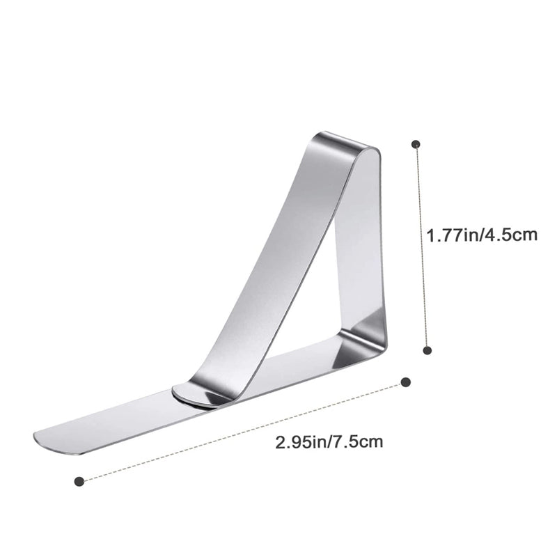 - Sturdy Design: Made of stainless steel, measures 0.6mm in thickness, anti-abrasion and rust resistant, with nice finished with smooth edge, integral molding, stable triangle structure which are great on hold tablecloths tight & lays flat;