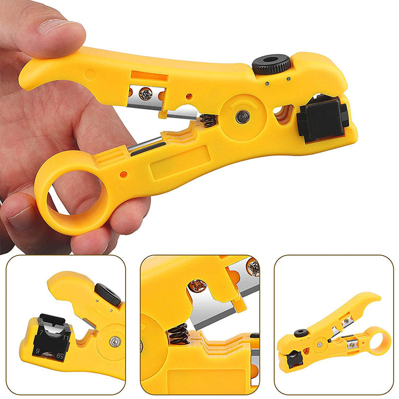 • Equipped with coaxial cable stripper, round cable stripper, cutter and flat cable stripper.