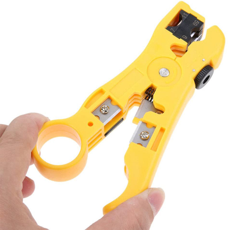 • Strips outer jacket of UTP and STP cable and CAT 5 round telephone cable.