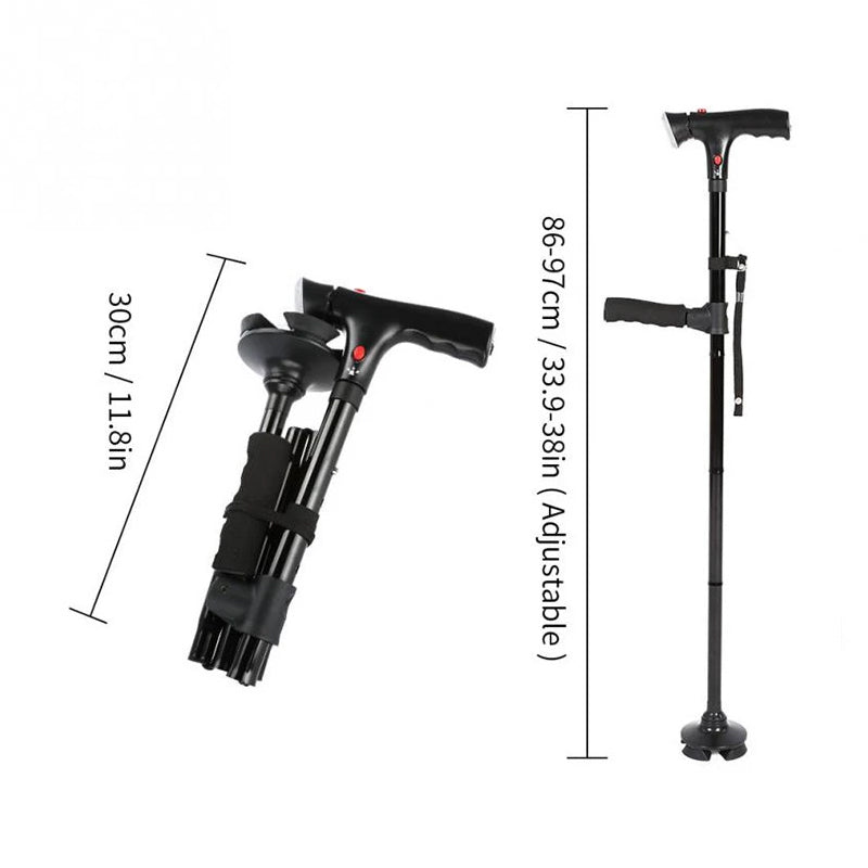 The telescopic aluminum shaft can adjust accordingly with your grandparents' height and need. The maximum length is 95 centimeters with 5 level adjustments. Its collapsible or folding feature makes the stick easy to carry.