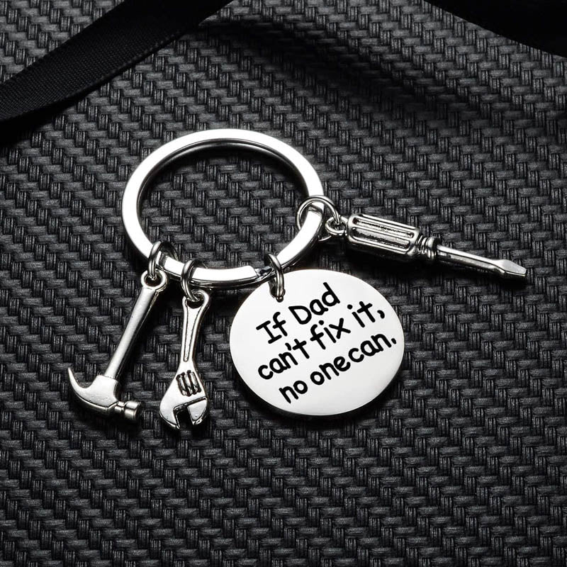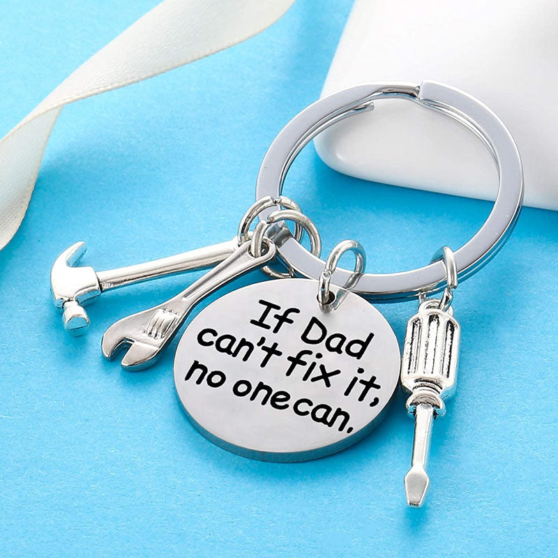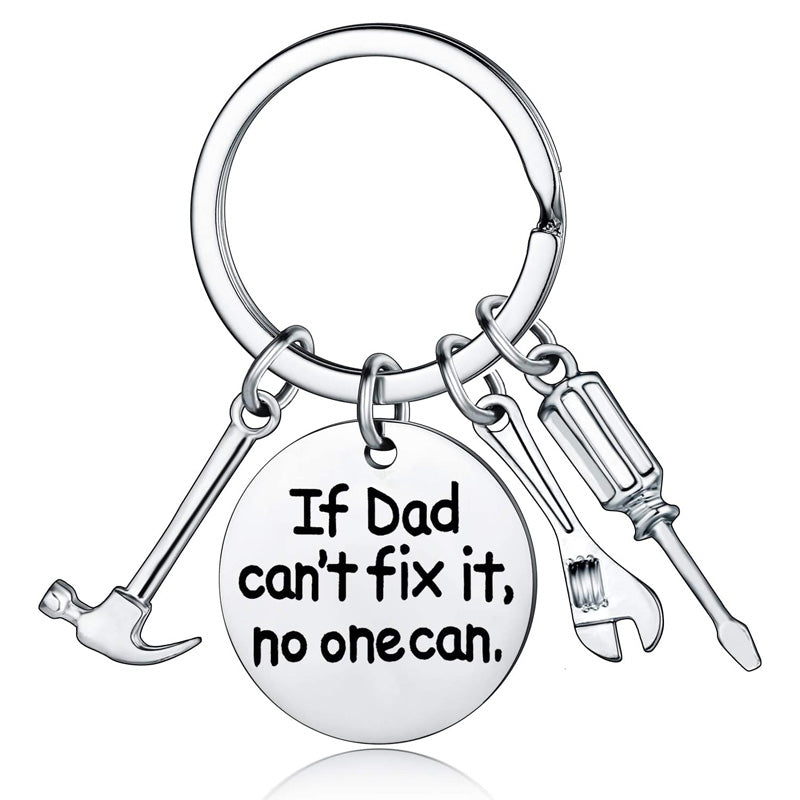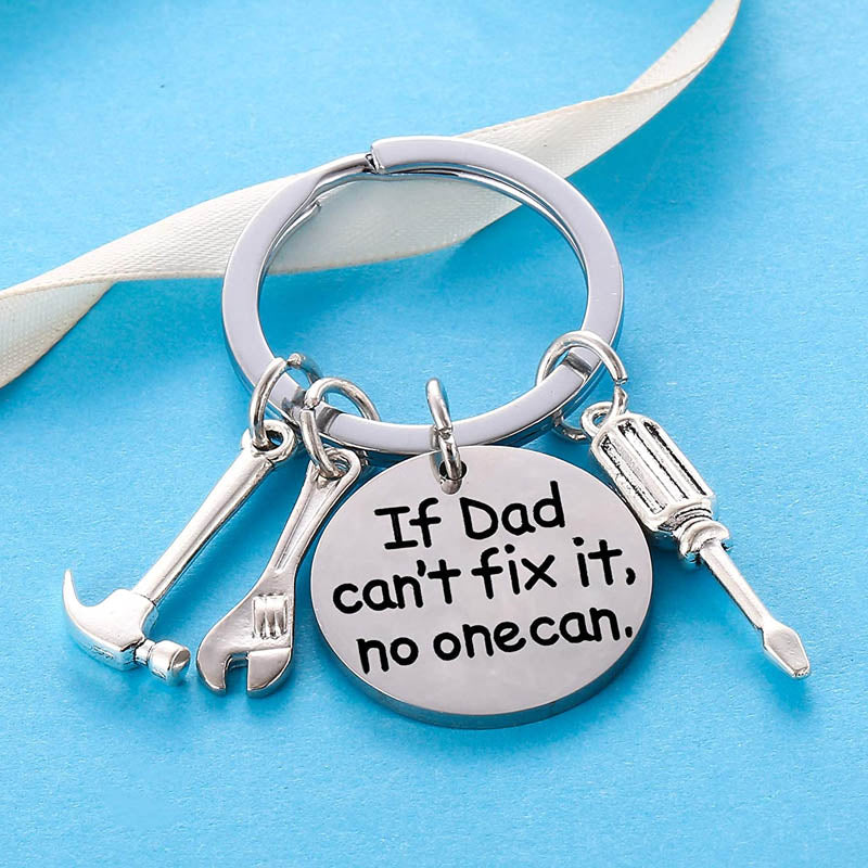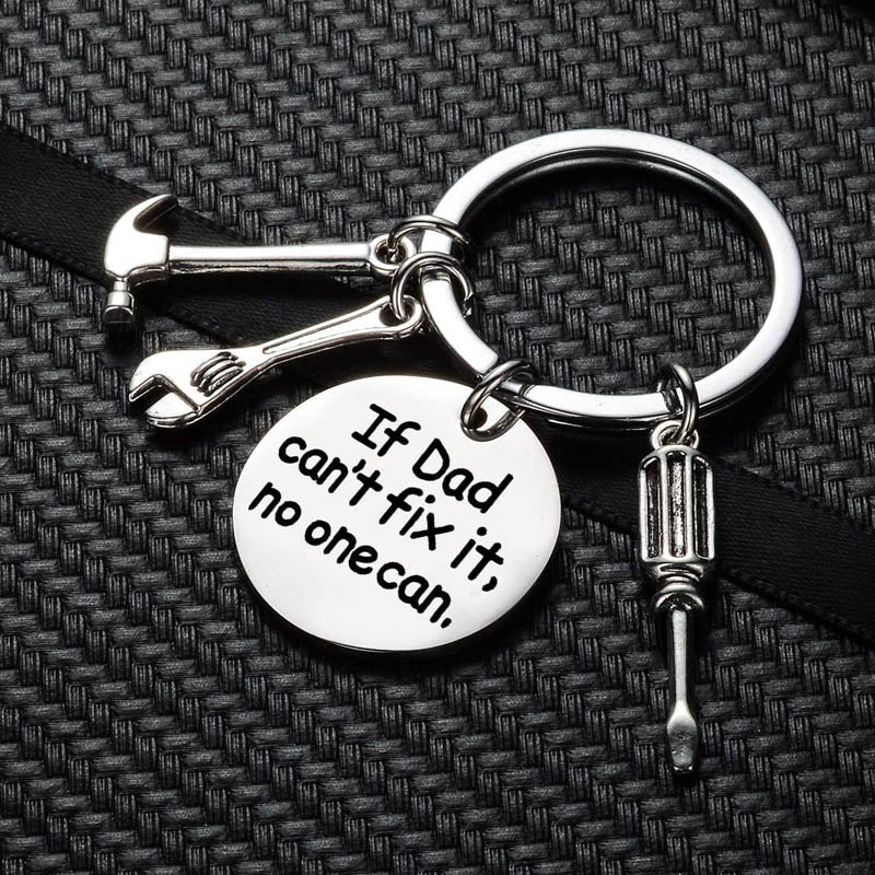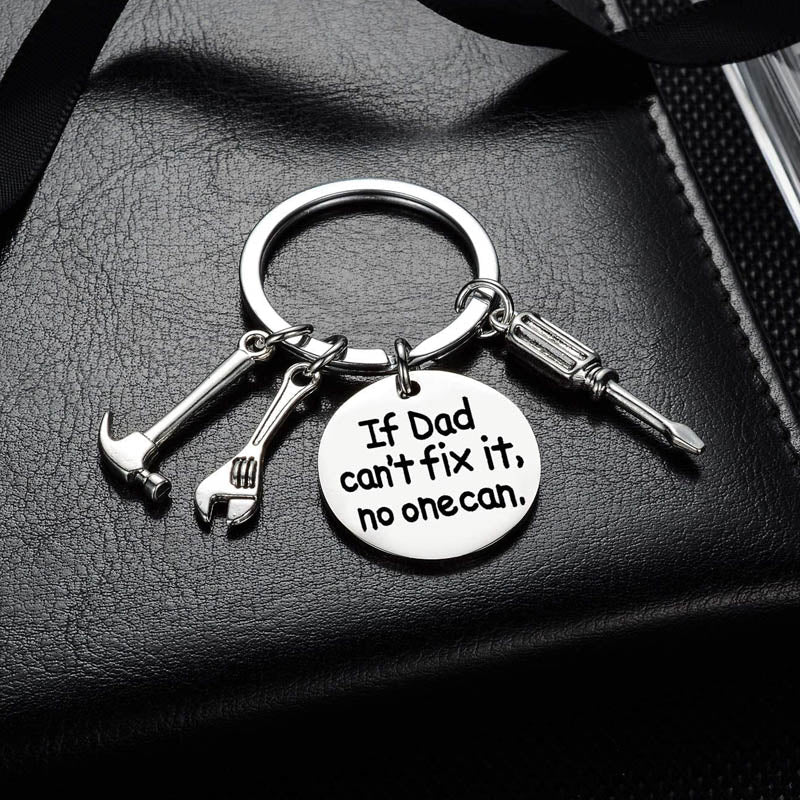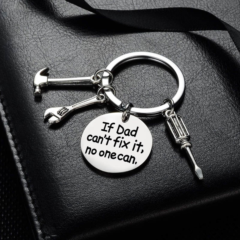 - The keychain is made of funny tools charms, cute screwdriver wrench hammer charms and a pendant with words: if dad can't fix it , no one can, creative design cut gift for father papa dad.
