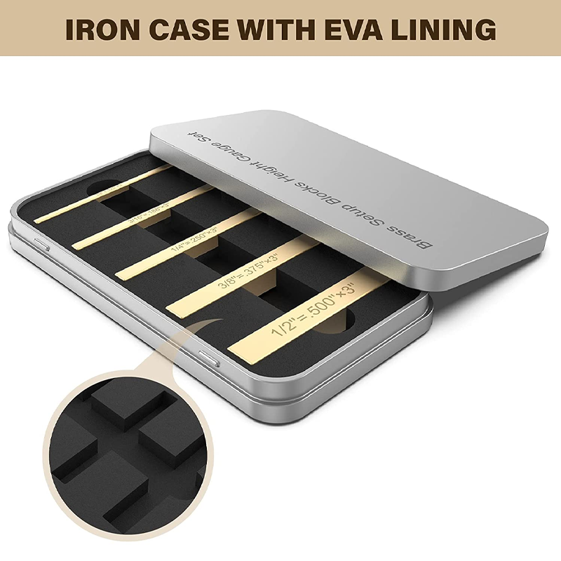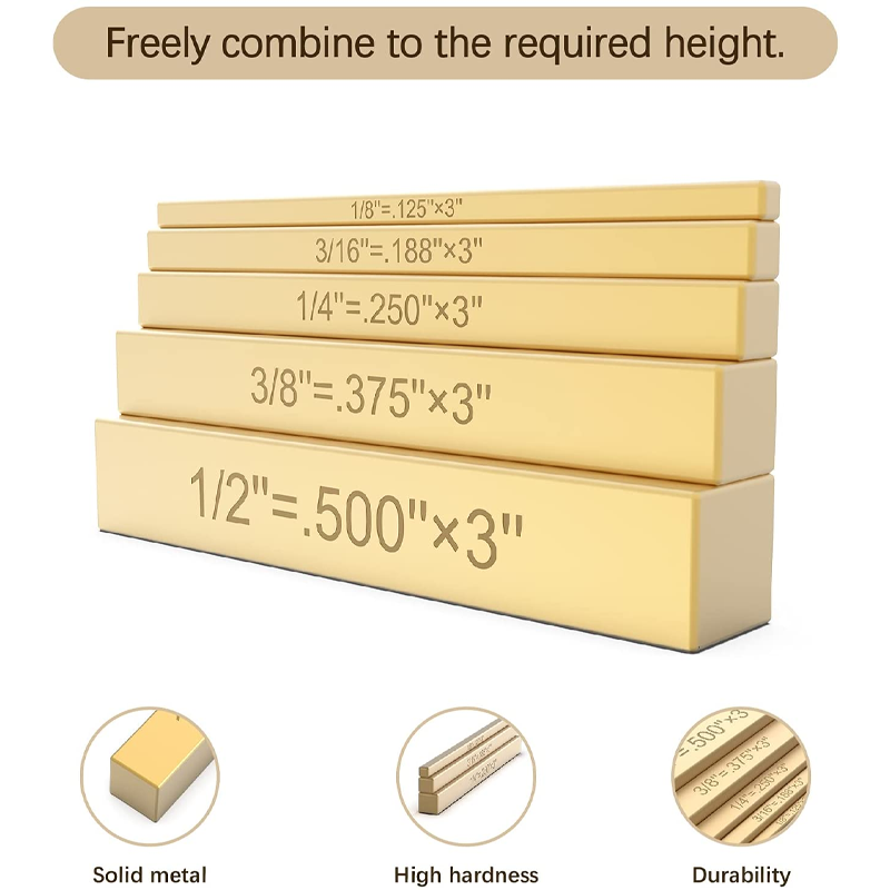• ๐Ÿ“[Accurate measurement]: Our brass set up gauge blocks are all 3 inches long, respectively: 1/8", 3/16", 1/4", 3/8", and 1/2" squared.Accuracy: ยฑ0.03mm (less than 2 mils=less than 0.05mm).