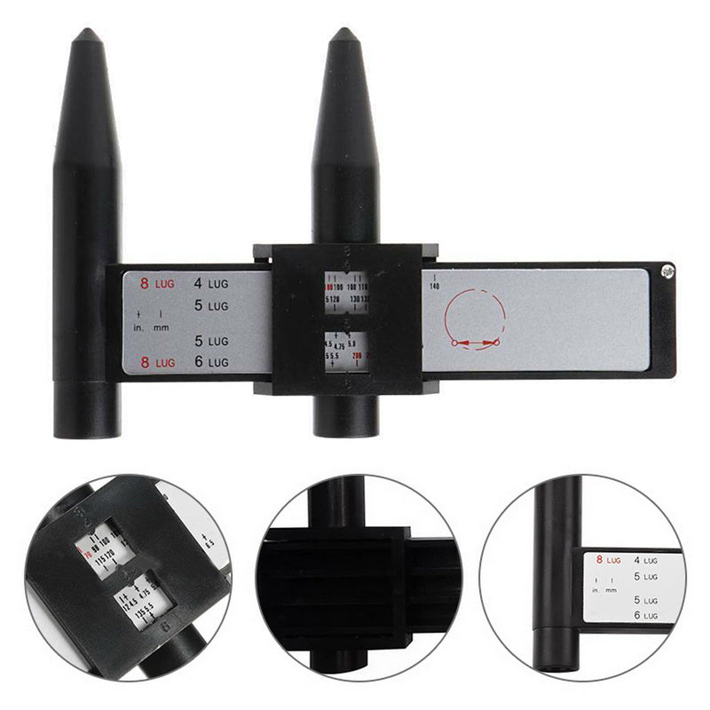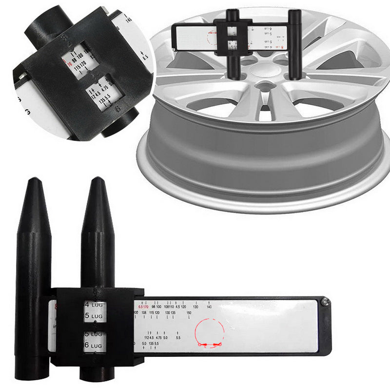 Measures most common 4, 5, 6 and 8 lug bolt patterns.