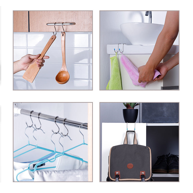 There is no need to worry with tools or fret over putting holes in your beautiful walls. S hooks easily hang on existing objects such as racks, bars, and shelves without the need for nails, screws, or adhesives.