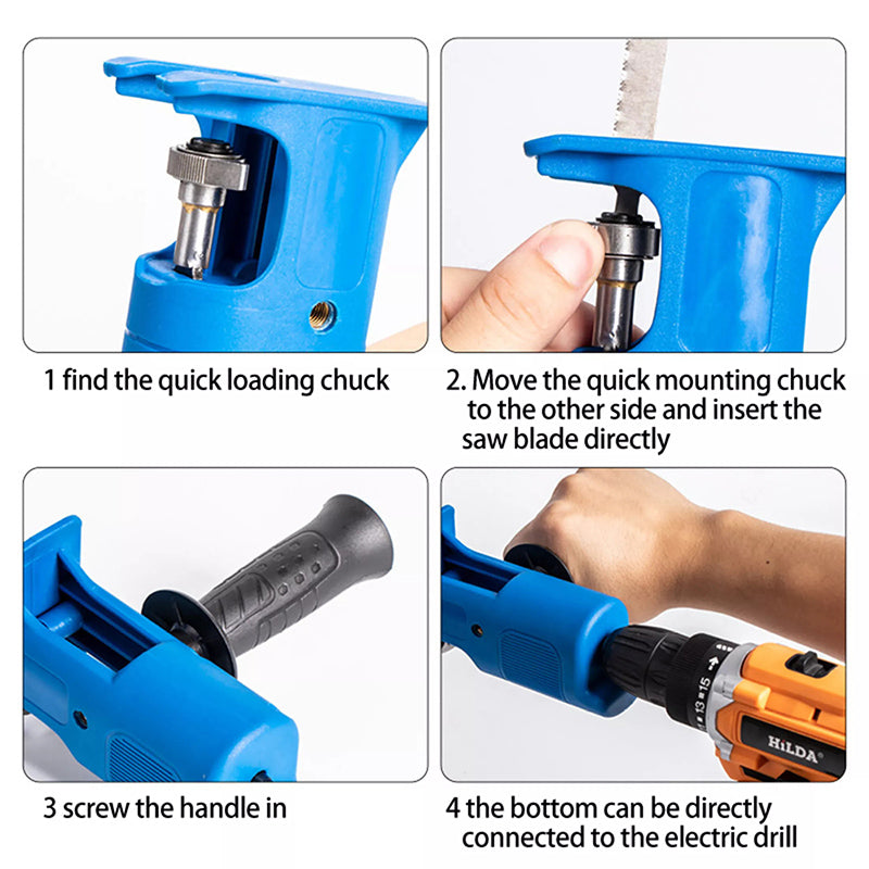 • The protable reciprocating saw adapter has ergonomic handle, comfortable to hold, safe to carry, suitable for wood and metal cutting.