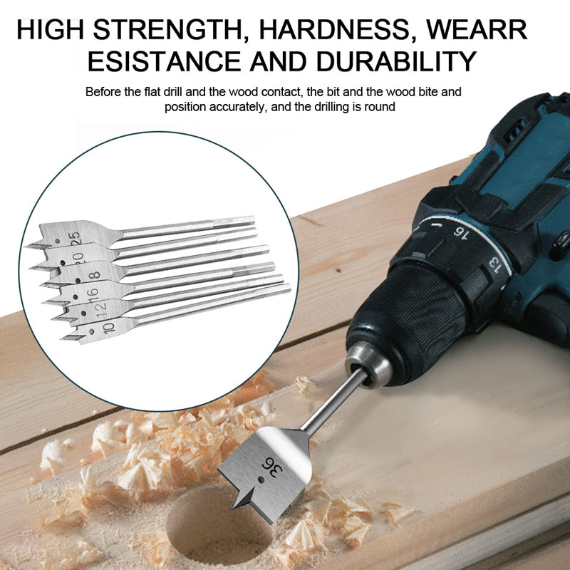 The paddle drill bits set includes six common sizes for versatility and fits the majority of brands currently on the market.