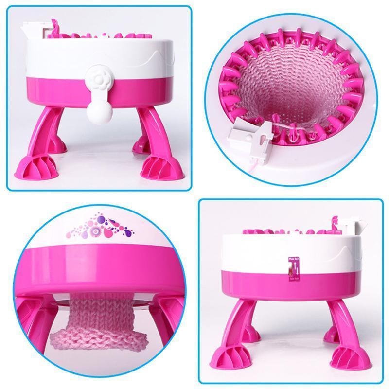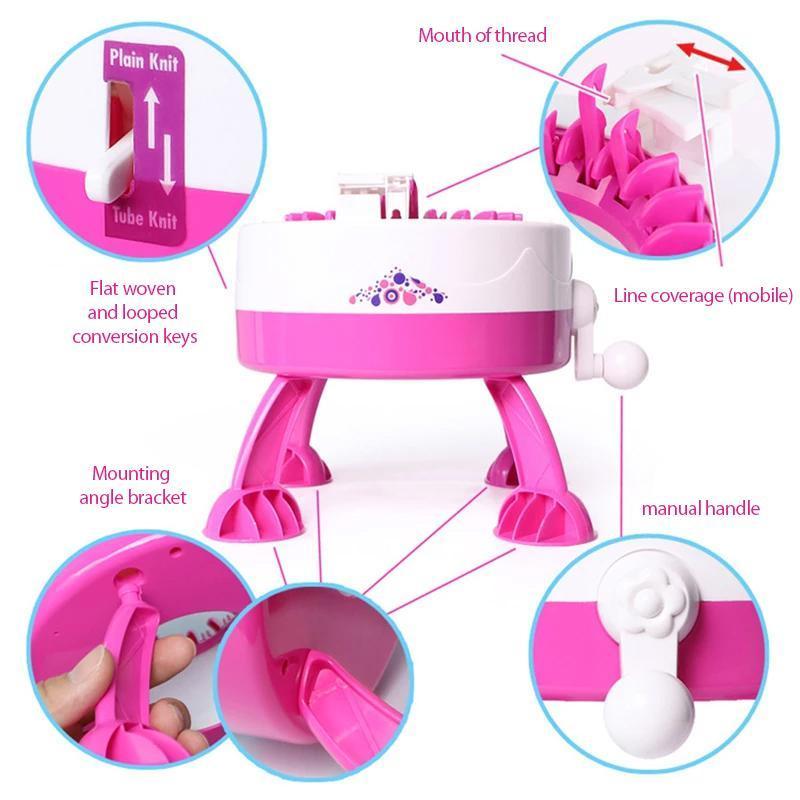 Create a flat or round dot in seconds with a crank. Simply thread the thread into the spindles and turn the crank to knit your own masterpieces. No batteries required. This knitting machine helps you quickly weave a scarf or hat and you can easily use it just by following the instructions.