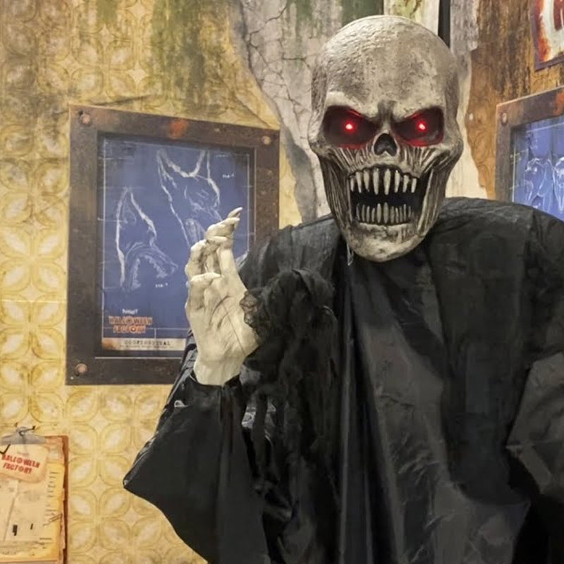 LED Eyes: With infrared sensor, it will automatically light up his scary glowing red LED eyes when someone is approaching.