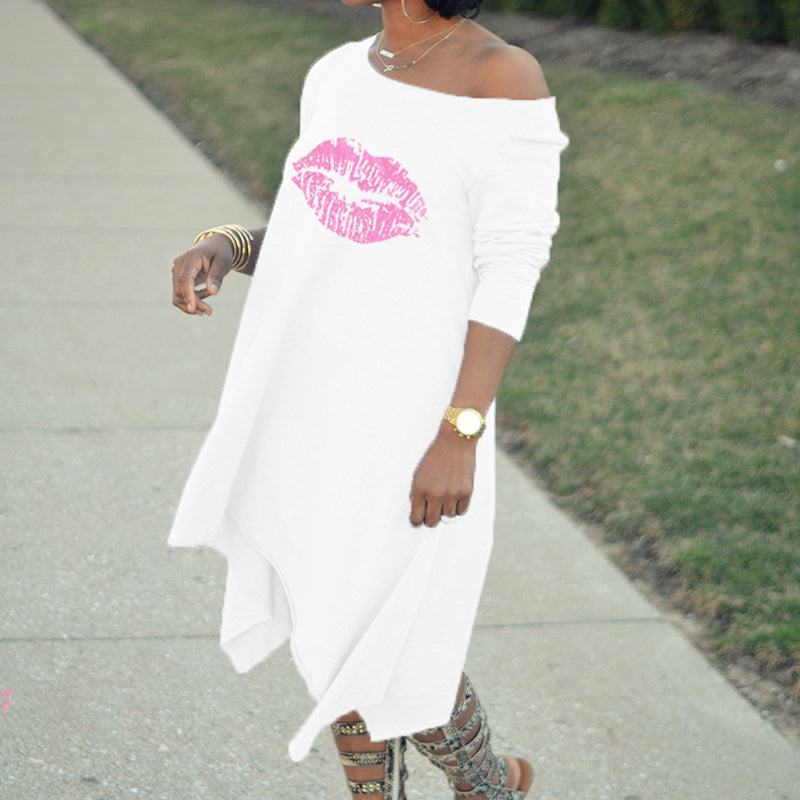 Stylish: The design of the lip print T-shirt dress is very simple. The dress is very suitable for everyday life or travel.