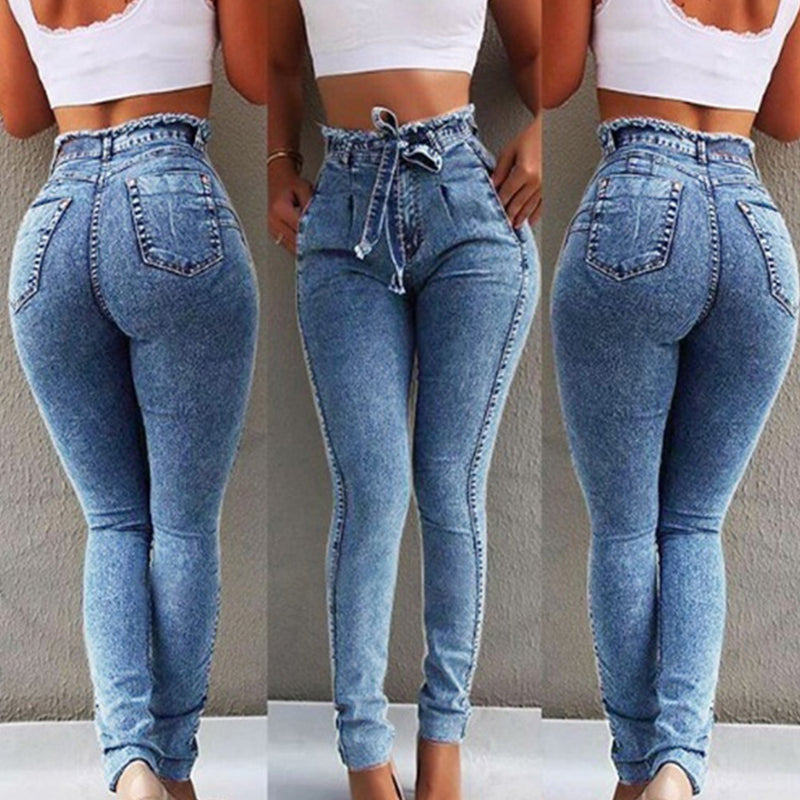1 Pair of Slim-fit Tassel Belt High-Rise Jeans