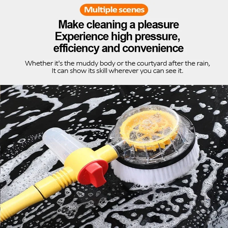 - No Electric Needed: The Brush Head with built-in gear can spin 360 degree automatically to wash your car under water flowing pressure. Just push the brush gently around all the places you want to wash. Great Energy Saver!