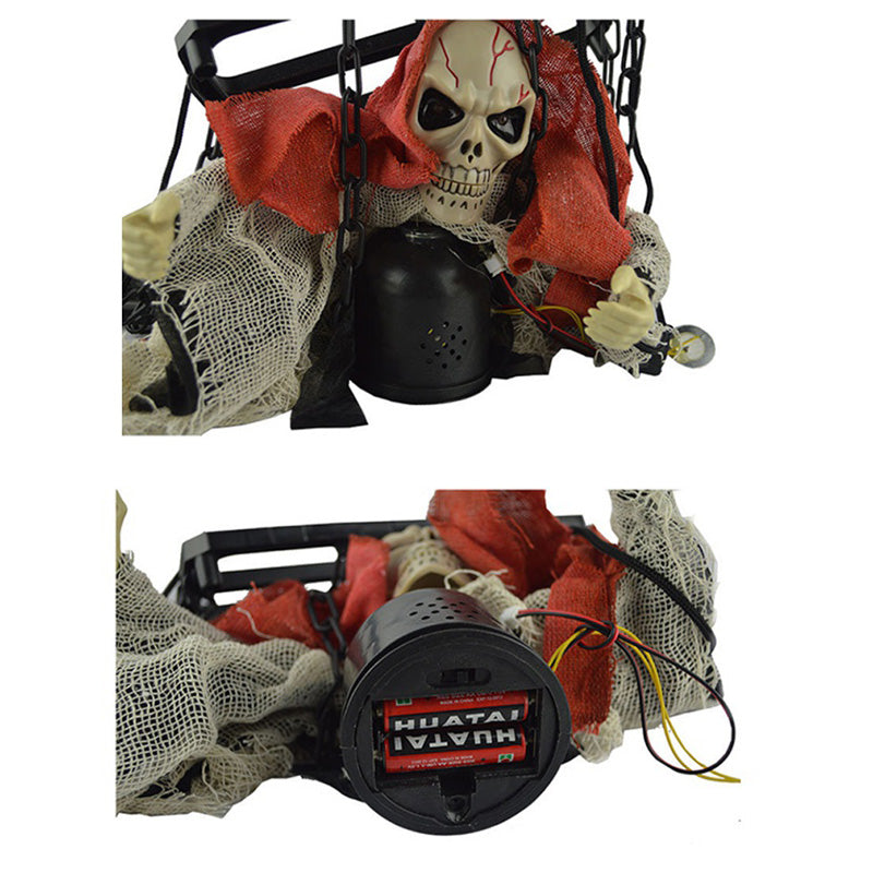 - Red Flashing Skeleton Eyes & Creepy Voice - creates a horrifying and scaring atmosphere