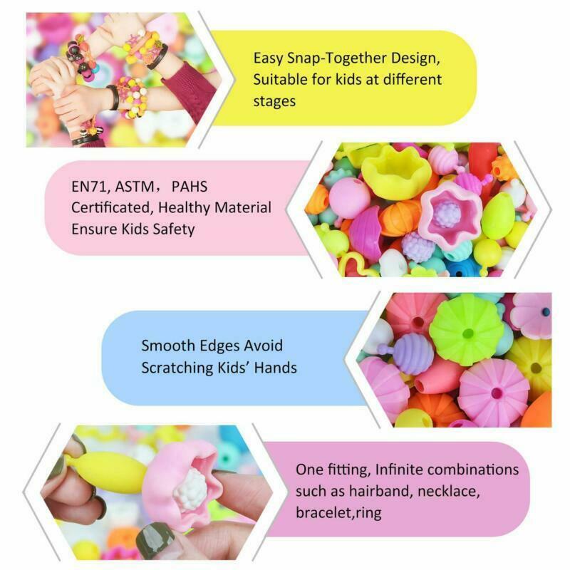 Easy Snap Design and Premium Quality: Our beads is designed with perforated holes or dots, kids can snap them together easily with no thread, which is simple and convenient.